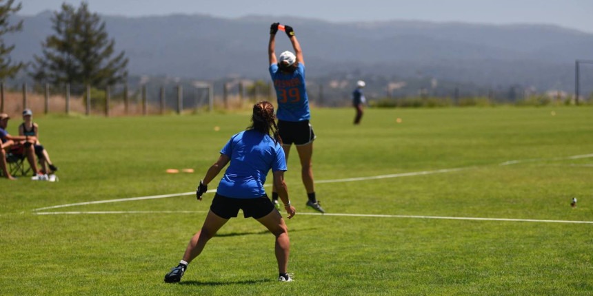 상대팀의 코트를 향해 플라잉디스크를 던집니다.